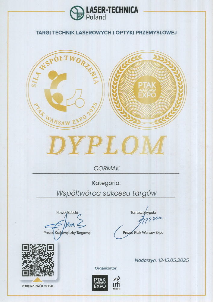 CORMAK to największy polski producent i dystrybutor maszyn i urządzeń do obróbki metalu i drewna, o międzynarodowym zasięgu. Dzięki 20-to letniemu doświadczeniu w dostarczaniu maszyn i rozwiązań technologicznych, zajmuje pozycję lidera w dziedzinie zaopatrzenia przemysłu. Nowoczesne i innowacyjne podejście do produkcji konsekwentnie wzmacnia pozycję firmy na rynku jako producenta maszyn przemysłowych.