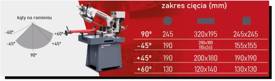 | Zakres cięcia pod kątem | od -45° do +60° |